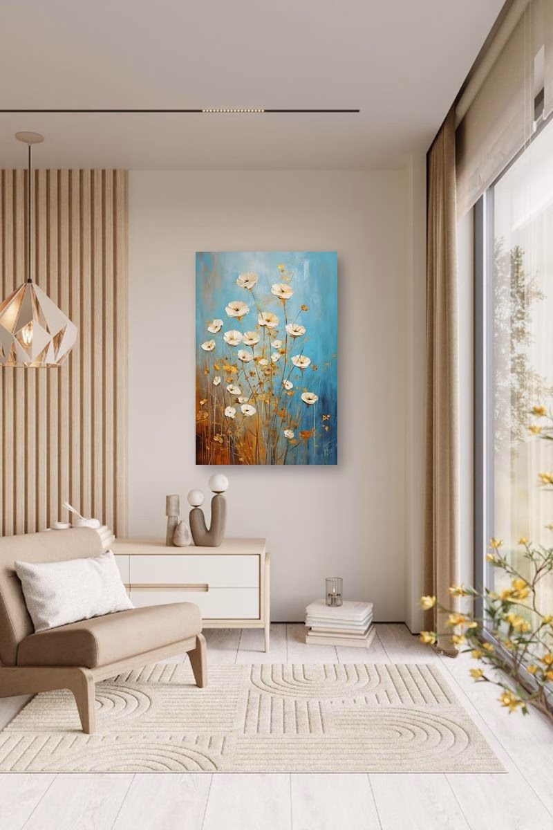 O pictură plină de flori de câmp, care aduce sentimentul de libertate și bucuria naturii în orice încăpere.