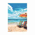 Acest tablou peisaj prezintă o plajă tropicală cu ape turcoaz și nisip fin, o escapadă perfectă din cotidian.